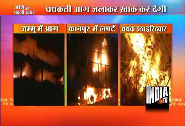 Jammu/Kanpur/Haridwar, May 9: Three major fire incidents in places as far away as Jammu, Kanpur and Haridwar caused considerable damage to a fruit wholesale market, a power transformer and a hilly forest on Tuesday.