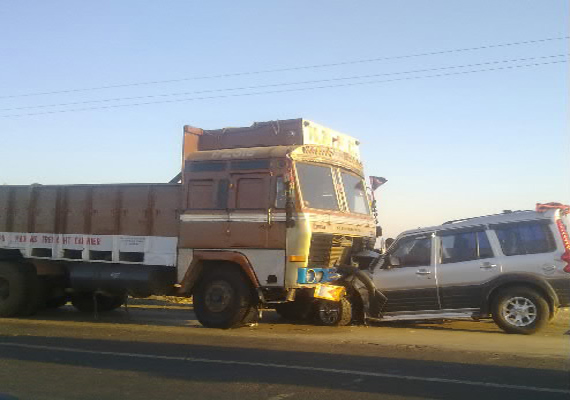 Nellore (AP): Five people, including three Bihar policemen sent on election duty, died when a speeding container rammed into stationary vehicles on National Highway near Nellore on Sunday.