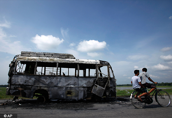 Some persons in Rangiya had yesterday blocked NH 31 and set on fire a bus and a wooden bridge.
