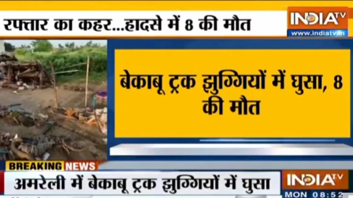Eight people were killed when a truck rammed into a hut in which they were sleeping in a village in Gujarat's Amreli district around 2:30 am on Monday, police said. The dead include two children aged eight and 13, police said, adding two other children were seriously injured in the accident at Badhada village.