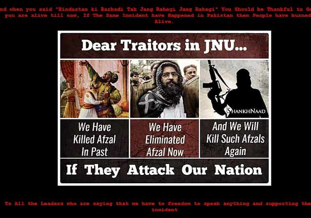 The message on the JNU website left by hackers appears to be an answer to the alleged anti-India slogans raised by some student groups during an event to commemorate the death anniversary of parliament attack convict Afzal Guru.