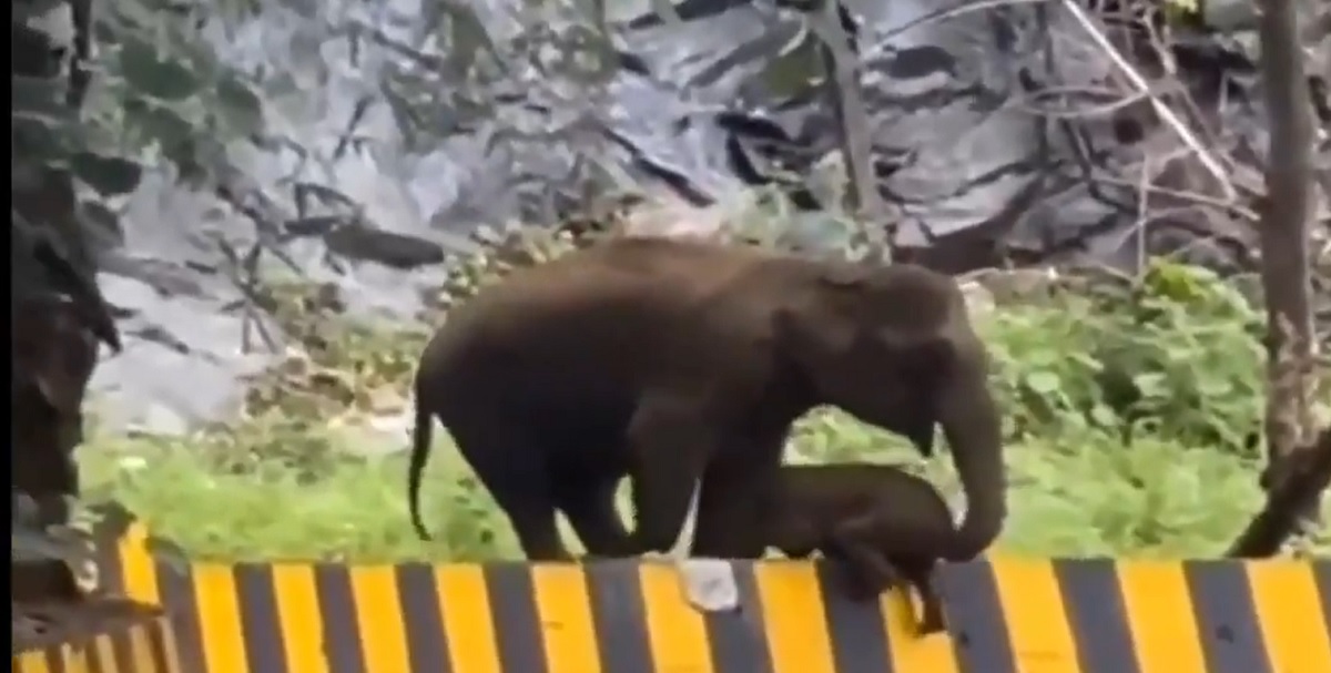 The bond of a mother with her child is pure and unconditional, be it humans or animals. Kerala's Malappuram brought out heartwarming scenes of a female elephant with her calf, both trying to cross a road divider. The visuals were filmed on Thursday by some cyclists.