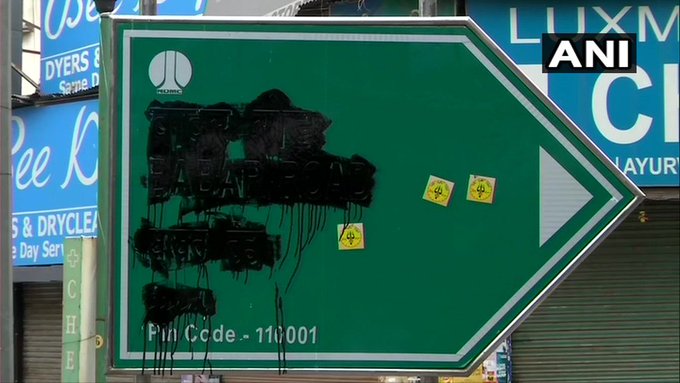 "Hence, we have blackened the road signage erected by the NDMC," said Hindu Sena president Vishnu Gupta.