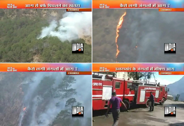 Chamoli, Uttarakhand, Jan 31: A devastating forest fire in the hills of Chamoli here on Monday gutted hundreds of trees and plants with firefighters nowhere ion the scene, villagers alleged.