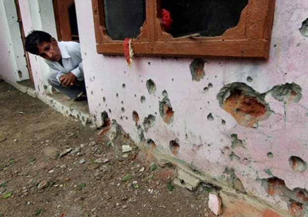 Frightened villagers living close to the International Border showed journalists bullet marks and gaping holes in their homes made by Pakistan shelling and firing.
