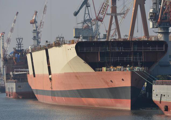The launch will mark the end of the first phase of its construction and it will then be re-docked for outfitting and construction of superstructure.