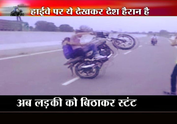 Jhansi, UP, Feb 22: India TV on Thursday evening telecast videos of four youths, including a girl, doing dangerous stunts on their motorbikes on the Jhansi-Shivpuri highway on UP-MP border.