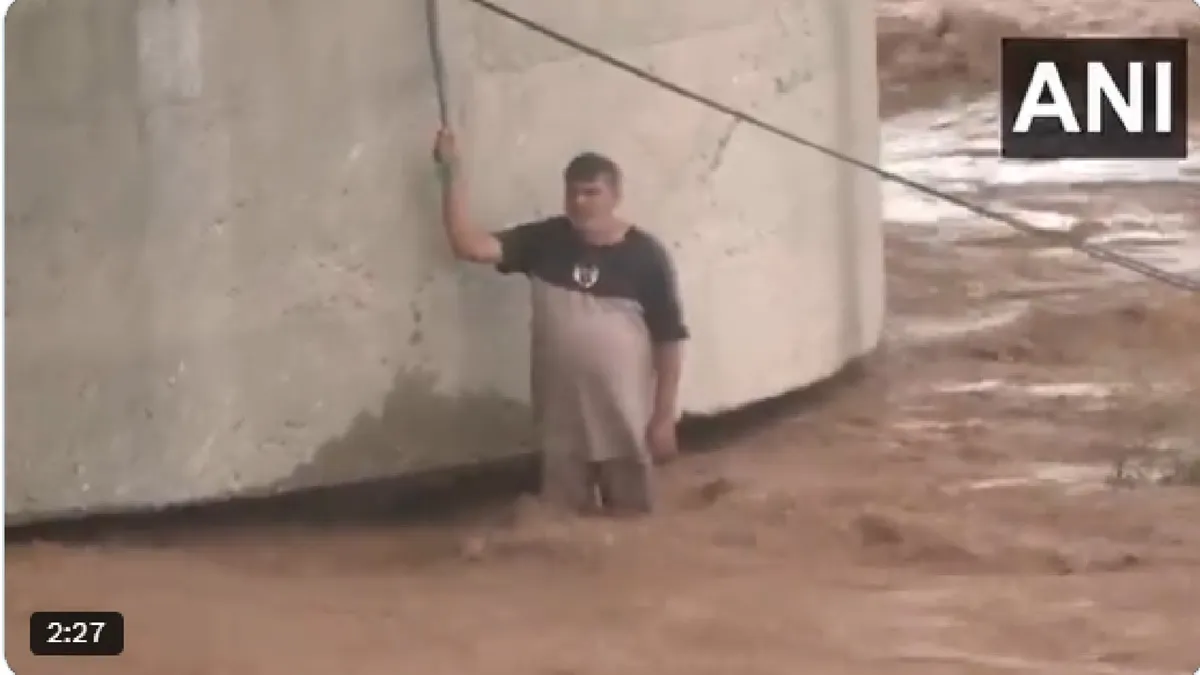 The footage shows Kumar holding onto the rope with one hand and looking toward onlookers across the riverbank as he waited for help. He remained stuck for nearly two hours before being rescued by the State Disaster Response Force (SDRF), which lowered a ladder from the bridge and pulled him to safety.