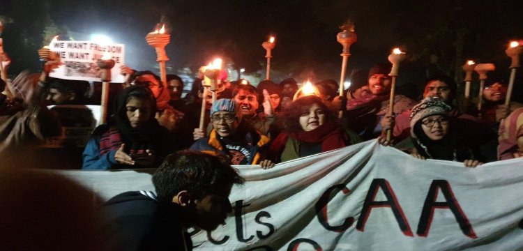 The protest march was also attended by former JNUSU President and CPI leader Kanhaiya Kumar. Students holding torches raised slogans like "Hai Jaan Se Pyaara Hindustan, Pyaara Pyaara Hindustan, Zindadil hai Hindustan, Protest Karega Hindustan, Nahi Jhukega Hindustan, Arey Gandhi Waala Hindustan... (India will not cow down, India will protest, India of Mahatma Gandhi will protest...)"