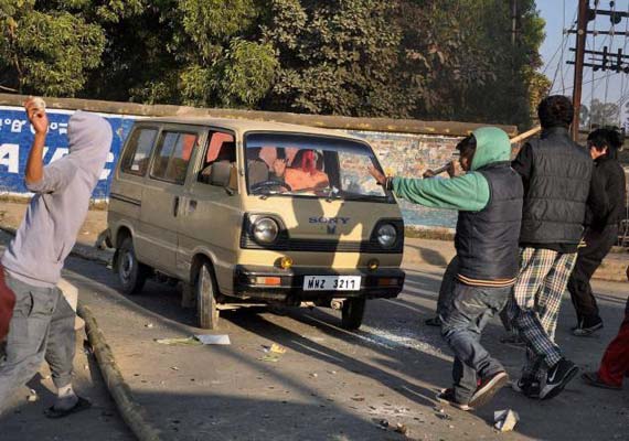 Earlier, police burst tear gas shells to disperse a mob which threw stones at the police vehicles in Imphal West district, official reports said.