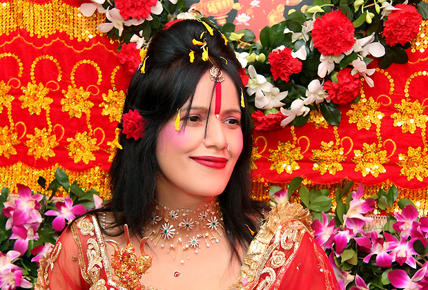 The passage and hall that leads to her has the appearance of a richly done pandal.