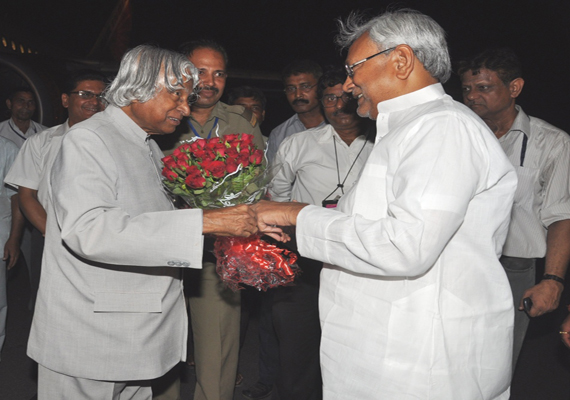 Nitish Kumar had personally gone to Patna airport last evening to welcome the former President. Kalam will be launching a hi-tech computer center at NSIC and will also address a programme at S K Memorial Hall today.