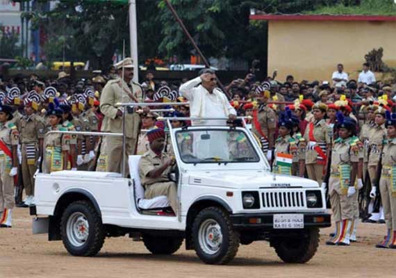 Bangalore: Karnataka Chief Minister Siddaramaiah on Friday hoisted the national flag and received the guard of honour at the Field Marshal Manekshaw parade ground here to mark the 68th Independence Day.