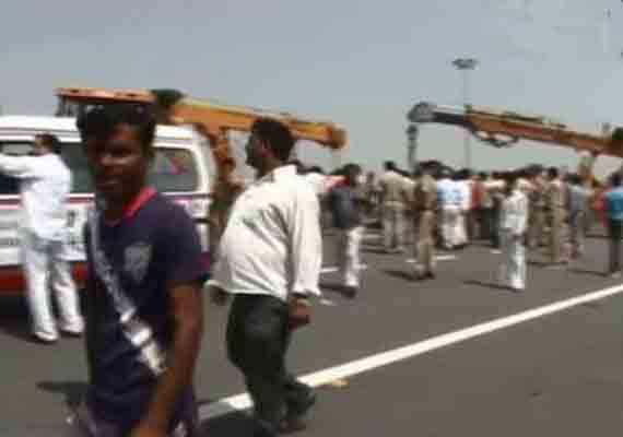 The accident occurred early this morning due to dense fog and zero visibility here.All injureds have been admitted to the Kailash hospital of Greater Noida.