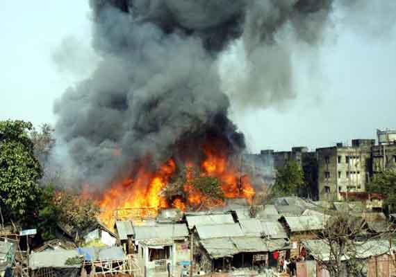 The fire erupted in the slum at the port town of Paradip, about 120 km from here, around midnight.