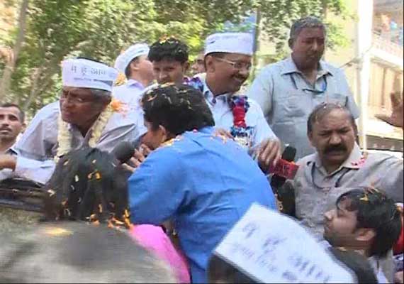 As the convoy of more than 20 cars passed through the lanes and bylanes of the congested area, residents peered out from the roofs and windows of their houses waving and cheering for the former Delhi Chief Minister.