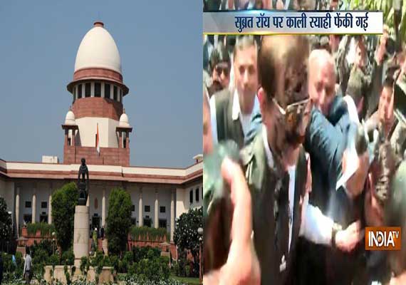 New Delhi: The Supreme Court Wednesday took suo motu cognisance of a Gwalior-based advocate throwing ink at Sahara chief Subrata Roy as he was being taken to the court in pursuance of its Feb 26 order.