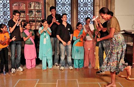 Mumbai, Nov 6 (PTI) When US President Barack was talking serious business with industry honchos this evening, his wife Michelle interacted with street children and orphans at the library of Mumbai University and danced with them to the tunes of a hit number from Aaamir Khan-starrer "Rang De Basanti".