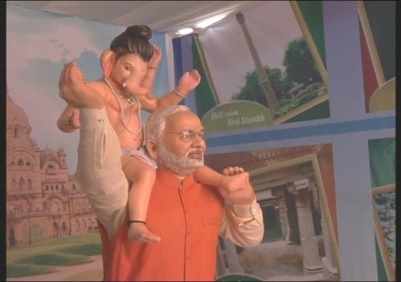 While the entire country is engulfed in the aroma of Ganesha coming, people in Gujarat are stuck with their Modi mania where many have clubbed Narendra Modi and Lord Ganesha together making magnificient idols.