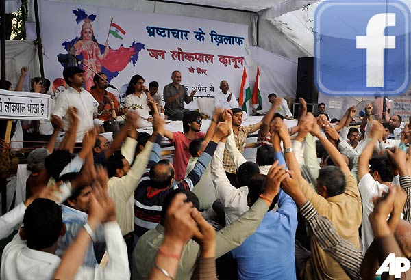 New Delhi, Apr 6: Gandhian leader Anna Hazare's fight against corruption has attracted netizens in hordes on Facebook.