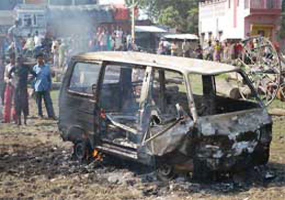 Eyewitnesses said, smoke came out of the van's engine, and was soon followed by flames. All the four tyres of the vehicle burst in the fire.