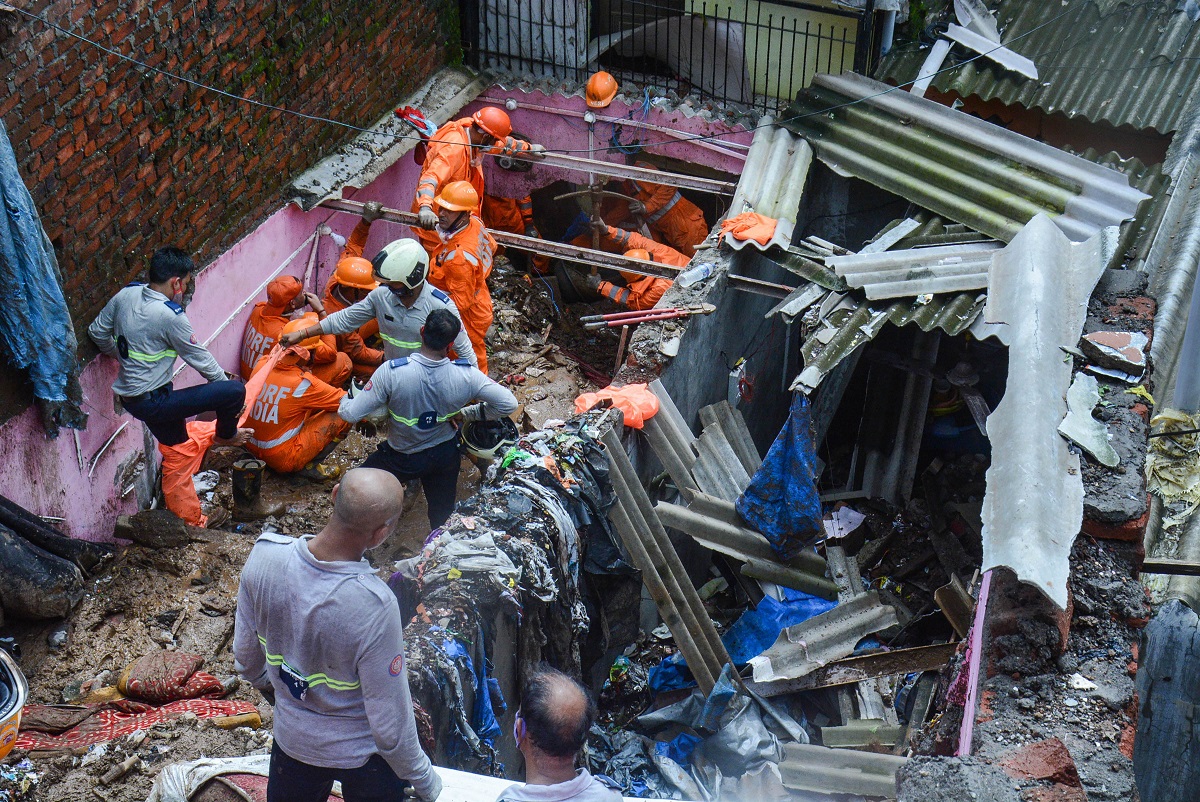 Two women stood on a wooden ladder in their shanty for over two hours out of the fear of getting electrocuted after a wall near their locality collapsed in Mumbai's Mahul area on Sunday following heavy rains. Fifteen people died after the compound wall came crashing down on some houses located on a hillock after a landslide at Bharatnagar locality in Mahul around 1 am, an official said.