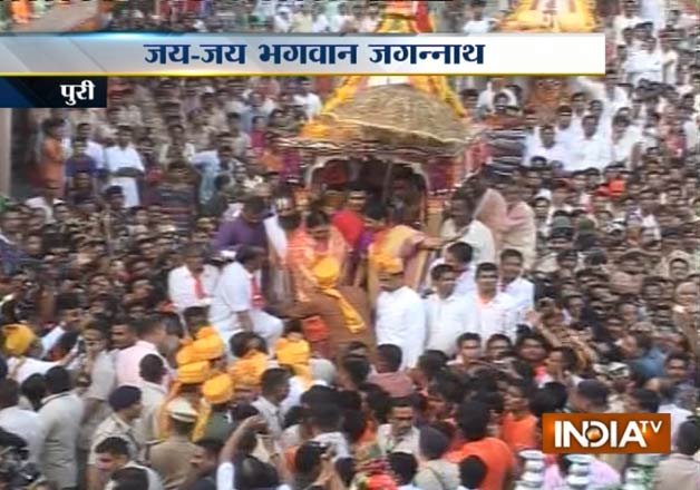 Meanwhile, in Ahmedabad, CM Anandiben Patel performed 'Pahind Vidhi' after which the annual rathyatra of Lord Jagannath, elder brother Lord Baldev and their sister Devi Subhadra began.