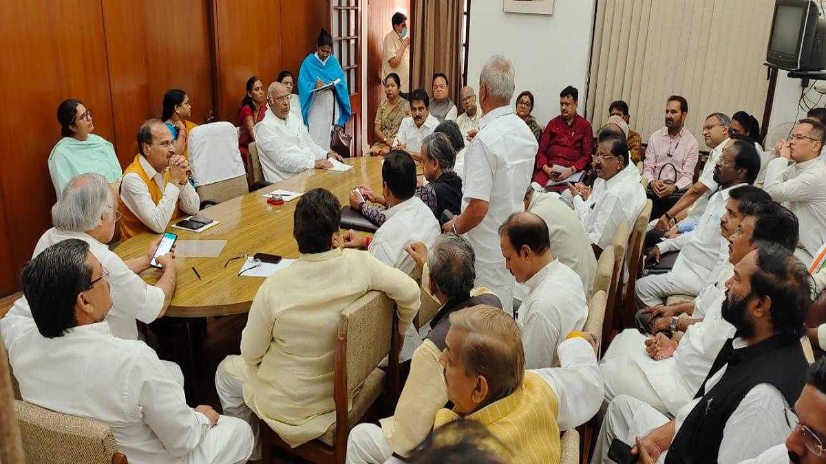 The Congress held a meeting of all its MPs on Thursday morning to derive the future course of action after the Enforcement Directorate (ED) sealed the Herald House. The party has maintained that it will go ahead with its scheduled protest on the issue of inflation and GST on Friday despite being denied permission.