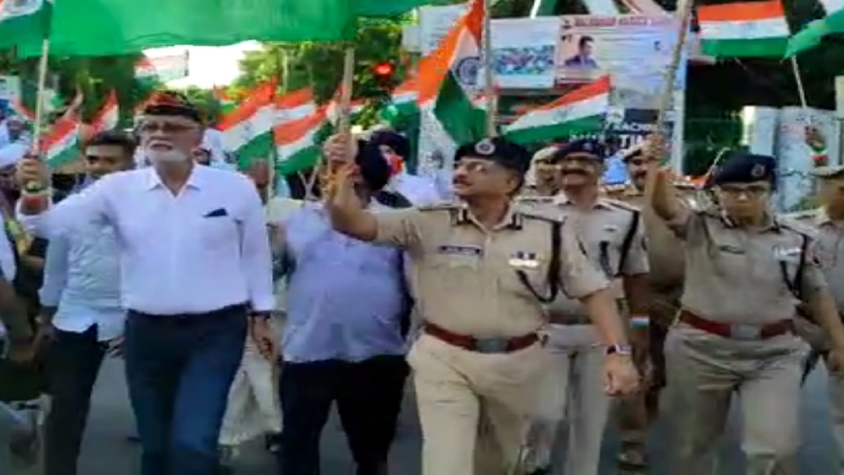 The Commissioner of Police (CP), Gautam Buddha Nagar, Alok Singh, led a flag march ahead of the 75th Independence Day celebrations on Friday. Several people were seen walking with the tricolor on the streets. The people participating in the march included police officers, retired comrades of the Army as well as police among other dignitaries.