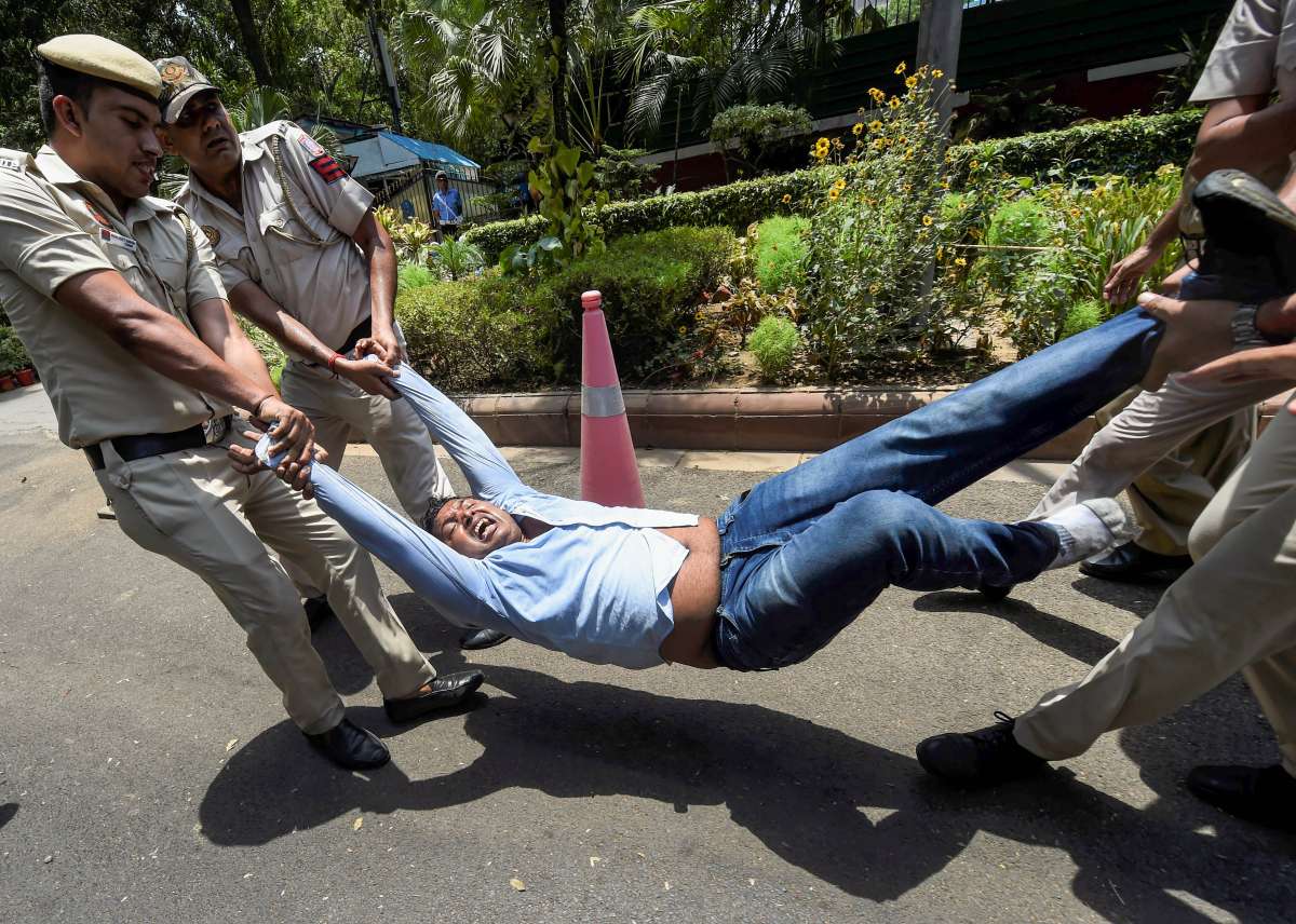 The former Congress president and the MPs had gathered at the Vijay Chowk to march towards the Rashtrapati Bhavan to draw the President's attention to the alleged misuse of central agencies by the government, but were stopped by the police.