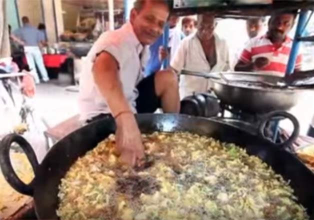 Ram, 60, surprises his customers with his unique cooking techniques of dipping bare hands in boiling oil to fry pakora.