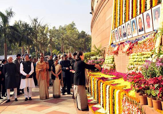 Leader of Lok Sabha Pranab Mukherjee and leaders of opposition in both Houses, Sushma Swaraj and Arun Jaitley were also present on the solemn occasion which brought back chilling memories of the attack on the citadel of democracy.