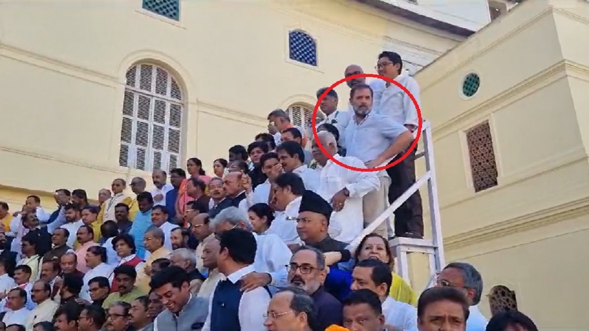 Ahead of Day 2 of the Special Session of Parliament, parliamentarians gathered for the joint photo session on Tuesday. During the photo session, Congress MP Rahul Gandhi was seen standing far behind in the row among several other leaders. A video has surfaced showing the Wayand MP standing in the second last row.