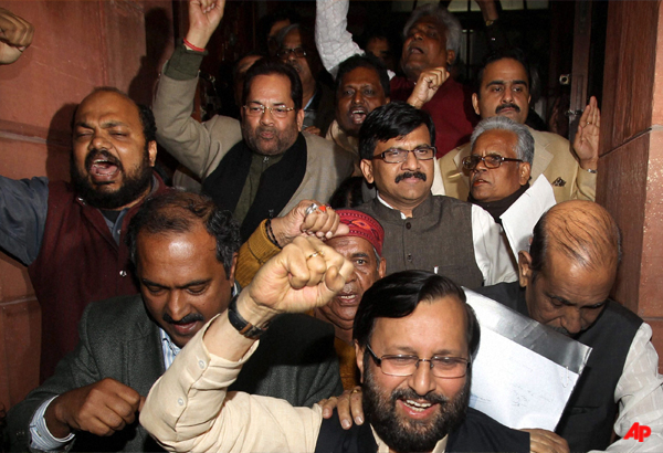New Delhi, Dec 30: Political parties, including UPA ally Trinamool Congress, on Thursday night cried foul after the Rajya Sabha failed to pass the Lokpal Bill terming it as a “black day” for democracy and the Opposition demanded resignation of the government for losing the “political and moral authority”.