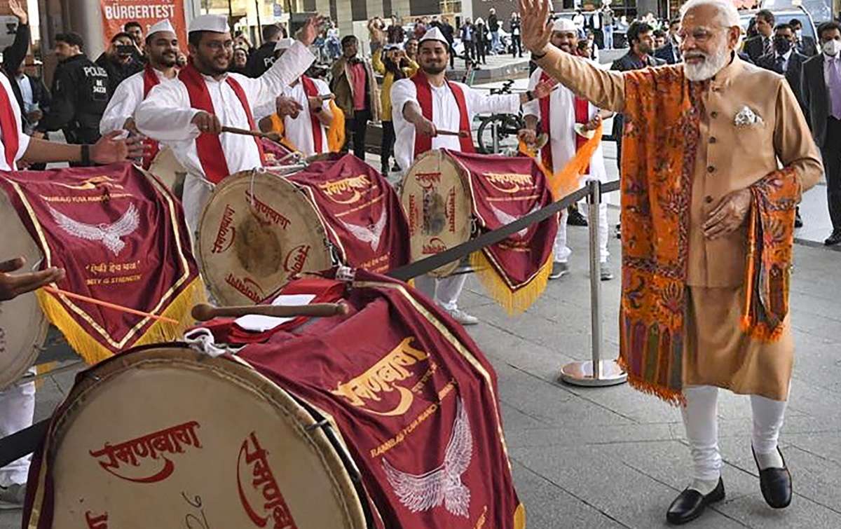 On the busy first day of his visit, the prime minister arrived in Berlin to a resounding welcome by the Indian community in Germany.