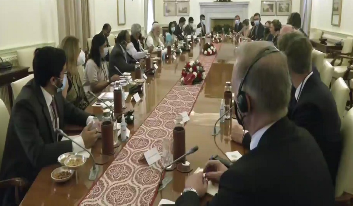 Prime Minister Narendra Modi and his Danish counterpart Mette Frederiksen held bilateral talks at Hyderabad House on Saturday. Frederiksen, who arrived here earlier today, is on a three-day visit, during which she will hold talks with President Ram Nath Kovind and Prime Minister Narendra Modi.