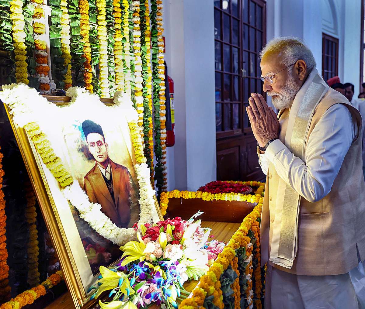 PM Modi paid homage to Savarkar on his birth anniversary and hailed Hindutva ideologue Savarkar, saying his personality exuded strength and his fearless and self-respecting nature could not tolerate the mindset of slavery.