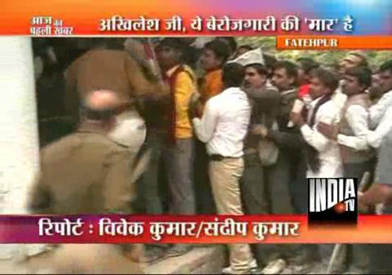 Kanpur /Fatehpur (UP), Mar 13: The police had to lathicharge to control a mob of people seeking unemployment allowance at the employment exchange in Kanpur and Fatehpur on Monday.