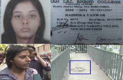 Delhi Police is questioning two of Radhika's friends, Aditya and Pankaj, who were reportedly in touch with her. Radhika's and her friends' call details are also being checked because the killer obviously knews about her movements, police sources said.
