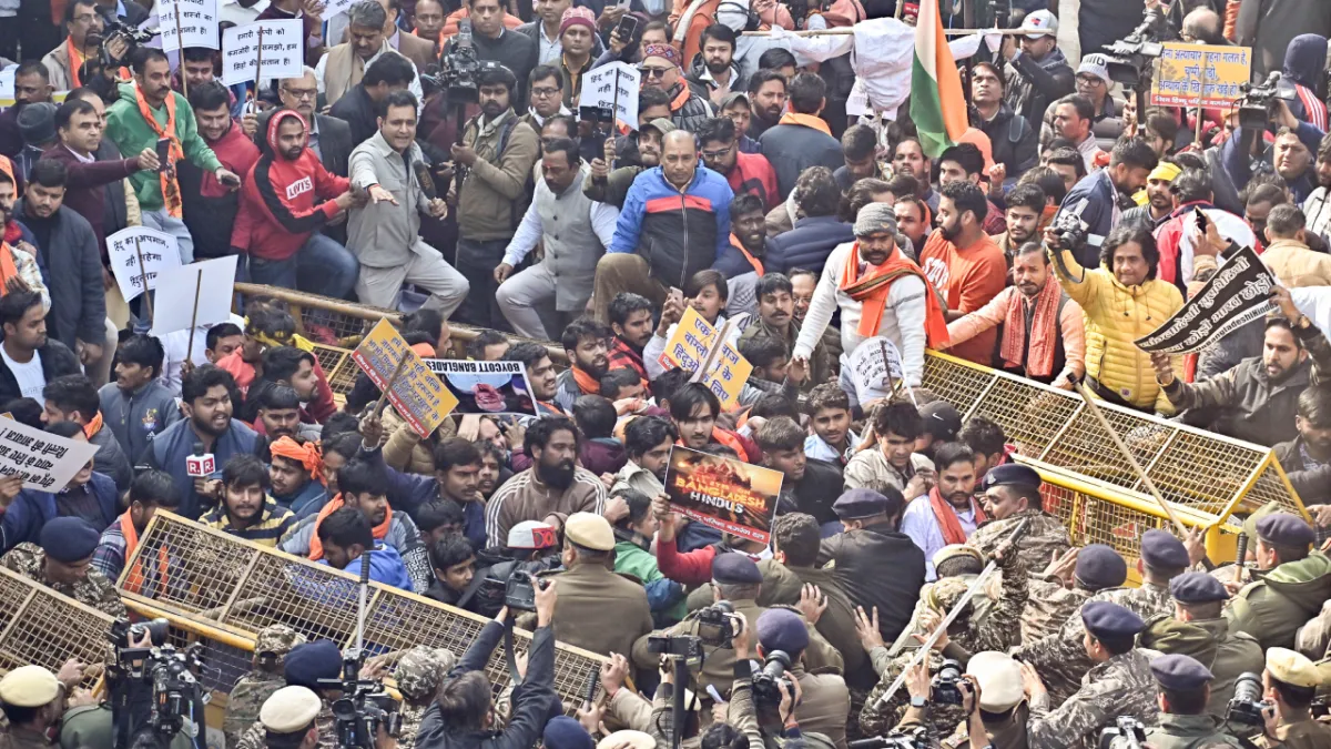 A major protest is taking place outside the Bangladesh High Commission in New Delhi on Tuesday in the wake of the brutal lynching of a Hindu man by an Islamist mob in Bangladesh's Mymensingh last week. The protests are being spearheaded by the Vishwa Hindu Parishad (VHP). Delhi Police has stepped up security outside as a precautionary measure. Some protesters were seen breaching the security barricades before being overpowered by the cops.