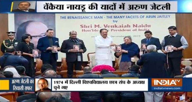 It was a day to remember former Finance Minister Arun Jaitley, and what better way is there than to launch a book on the departed leader to fondly remember the man who was loved by all. India TV's Editor-In-Chief and Chairman Rajat Sharma was present at the book launch ceremony of 'The Renaissance Man - The many facets of Arun Jaitley'. The book was launched by India's Vice-President Venkaiah Naidu, along with Lok Sabha Speaker Om Birla. The book is a compilation of articles on Arun Jaitley, done by Deepa and Harsh. Deepa and Harsh are children of Vice-President Venkaiah Naidu. The book launch took place at the residence of the Vice-President