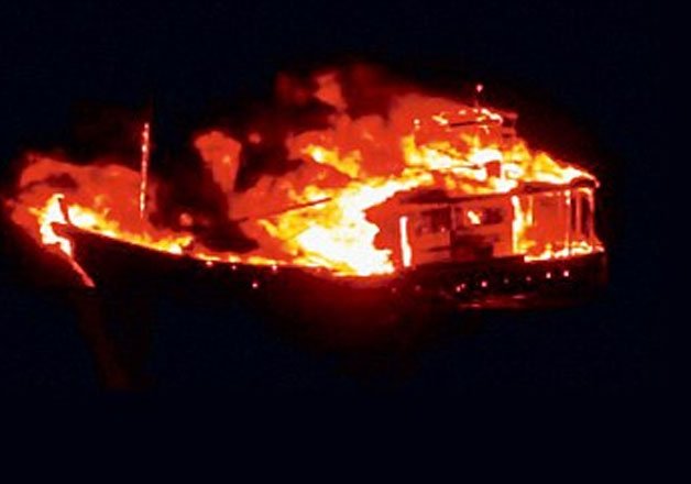 In their entire conversation, there was no mention of the other boat having gone up in flames or any hot pursuit by the coast guard.