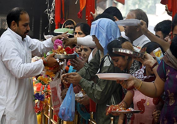 Keeping up a tradition that goes back centuries, dozens of local Muslims greeted their Pandit brethren as they arrived at the Khurbhawani Temple.