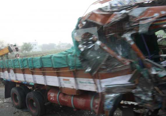 Shahjahanpur, UP, July 16: Seven people died and 14 others injured when two trucks collided on National Highway 24 near Tilhar in Shahjahanpur district on Monday.