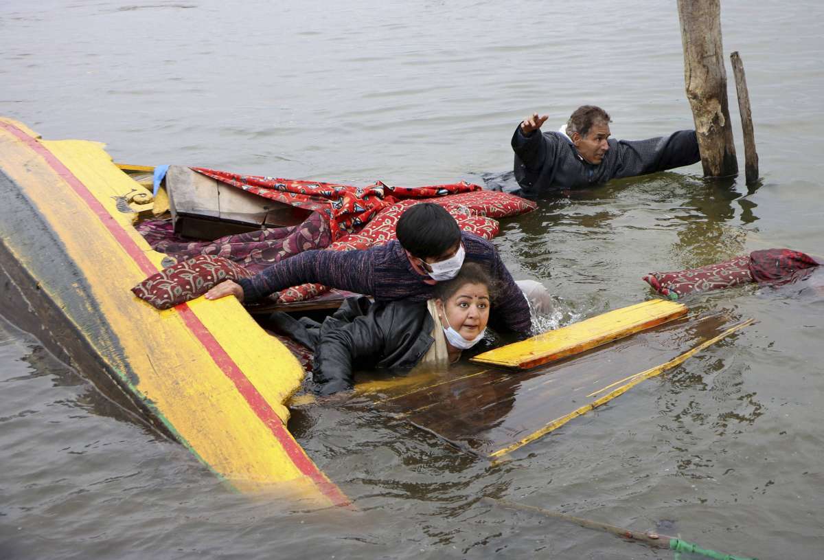 The shikara capsized when it was closing on the bank of the lake in the last leg of the rally.
