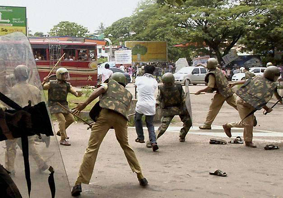 Trouble broke out when the protesters attempted to move towards Vidhan Bhawan where budgets of various departments were being tabled, police said.