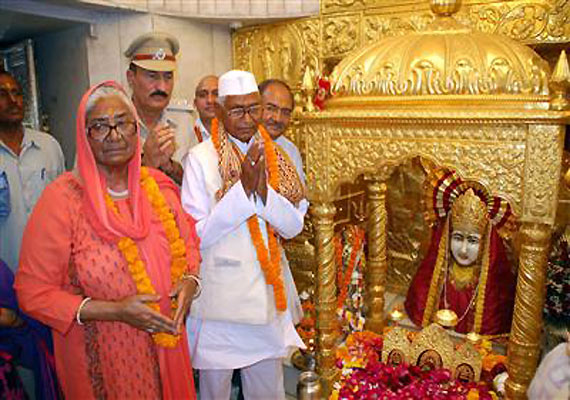 Pahadia had gone inside the Mansa Devi shrine, which is surrounded by thick vegetation and bushes, to pay obeisance with his wife Shanti Pahadia, when the snake came close to the cart parked outside, official sources said.