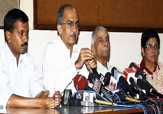 Team Anna members Shanti Bhushan, Prashant Bhushan, Kiran Bedi and Arvind Kejriwal appeared before the Parliamentary Standing Committee on Personnel and Law and Justice and suggested 34 amendments to the government's version of the measure.