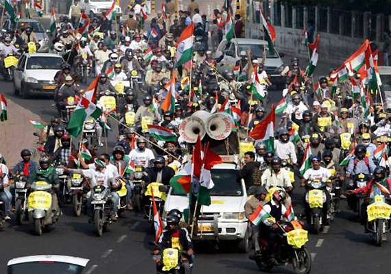 The rally that began from Rajghat ended at Tuglakabad maidan after passing though Bahadurshah Zafar marg, ITO, Tilak Marg, Sher Shah Suri Road, Mathura Road, Defence Colony, Andrews Ganj, August Kranti Marg, Press Enclave and MB Road.