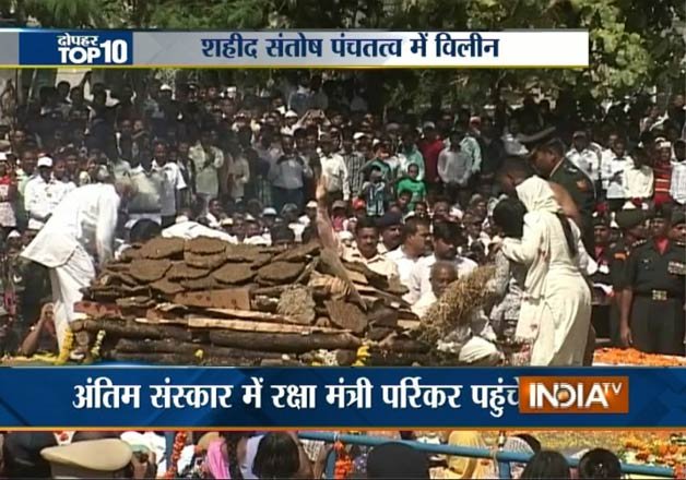 Satara (Maharashtra): Hundreds of people from all walks of life today converged at a small village here as the mortal remains of Colonel Santosh Mahadik, who laid down his life battling militants near LoC in north Kashmir's Kupwara district, were consigned to flames with full military honours.